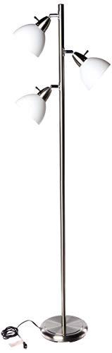 Boston Harbor Tree Lamp, 3-Light, Adjustable, 60 W, A19 Bulb, Arbitrary Shape, Satin Nickel Lamp, Spot Beam, 45 deg Pivot, 350 deg Rotate Beam, 65 in Height, UL Listed. Boston Harbor 3 Light Satin Nickel Tree Lamp. The three light tree lamp is the perfect lighting to use for any room. The lamp stands at an overall height of 65" is easy to assemble. Finished in satin nickel with three adjustable spotlights. The spotlights can rotate 350 degrees and pivot 45 degrees to provide light wherever you need it. Each light has its own on/off switch. Uses three 60 watt maximum A19 incandescent bulb (sold separately).