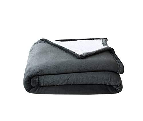 Chezmoi Collection Micromink Sherpa Reversible Throw Blanket (Queen, Gray)