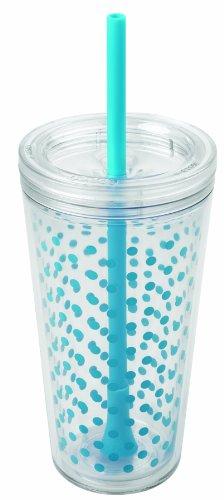 The Copco Minimus Cyan Dots 24 fl oz Cup is perfect for enjoying beverages on-the-go. Durable and insulated, its made from Tritan that stands up to daily use, with a double-walled construction that keeps drinks cold and prevents sweating. The removable straw features a footed base for easily mixing drinks. This reusable cup fits in most standard-sized cup holders, and the lid has a quarter-turn sealing mechanism that prevents spills and leaks for easy, mess-free use. Holds up to 24-fluid ounces. Top rack dishwasher safe; hand wash recommended.