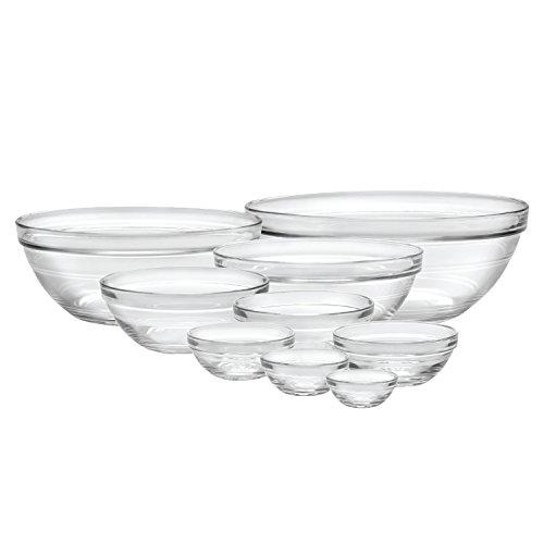 - Includes 9 nesting bowls: 1 ounce, 2 ounce, 4 ounce, 6 ounce, 10 ounce, 1/2 quart, 1 quart, 1- 1/2 quart, 2-1/2 quart capacity