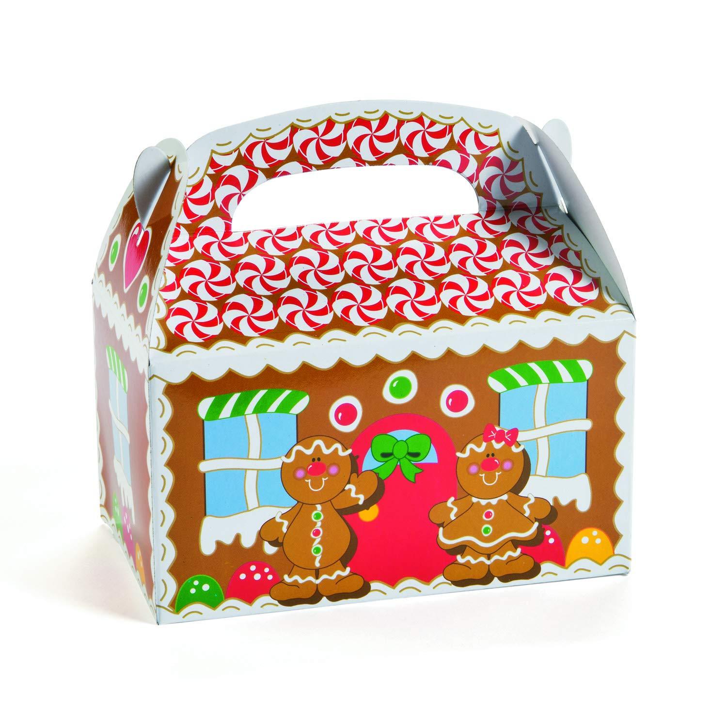 Fun Express Gingerbread House Cardboard Christmas Treat Boxes - 12 Piece Pack