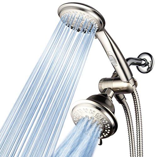 HotelSpa 42-setting Ultra-Luxury 3-way Combo with ON/OFF Pause Switch (Brushed Nickel Finish) - Pampering Luxury plus Mobility and Flow Control! - Use two Showers Heads separately or use Showerhead and Handheld Shower both together for a choice of 42 full and combined water flow patterns!