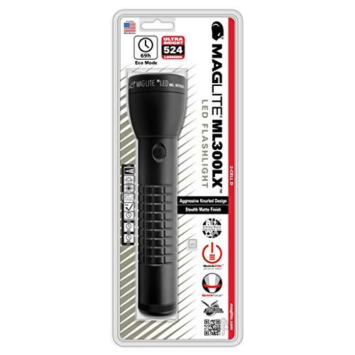 MagLite ML300LX LED Aluminum Body with Aggressive Knurled Design, 2-Cell D Handheld Flashlight, Matte Black