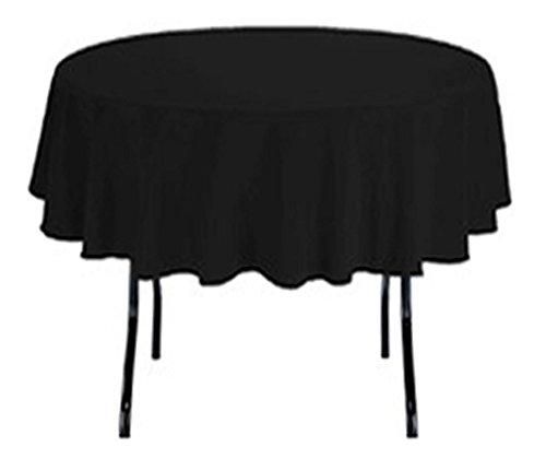 Tablecloth size 70" diameter; seamless one-piece design. Fold over hemmed edges; instant setup - no clips or fasteners needed. Made of premium quality polyester fabric - extra durable.