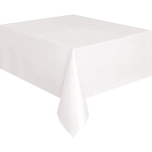 Unique Industries 50354 White Plastic Tablecloth, 108" x 54", Bulk Packaging
