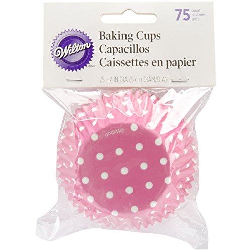 Add some fun to your cupcakes and muffins with these bright and colorful Wilton standard sized baking Cups! these pretty Pink baking Cups are retro and fun with white polka Dots. Each baking cup measures 2 inches in diameter. 75 pieces per package.