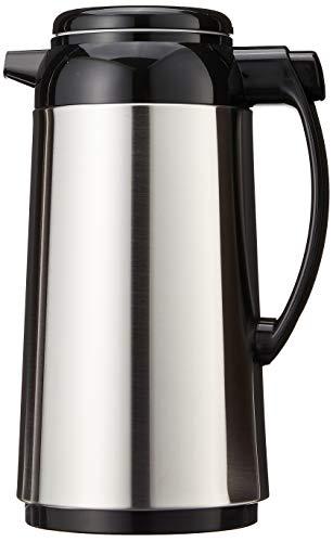 This vacuum-insulated carafe maintains and serves any hot or cold beverage at the proper temperature. Press your thumb against a button on the handle, and the spout opens to allow pouring. The carafe's satin-finish, stainless-steel exterior and black plastic accents create a modern, functional appearance. Rinsing the carafe's glass interior with warm water is usually the only cleaning necessary, but swirling a teaspoon of mild detergent diluted in warm water around with a soft sponge or cloth removes stains. The exterior merely needs wiping with a damp cloth. --Fred Brack